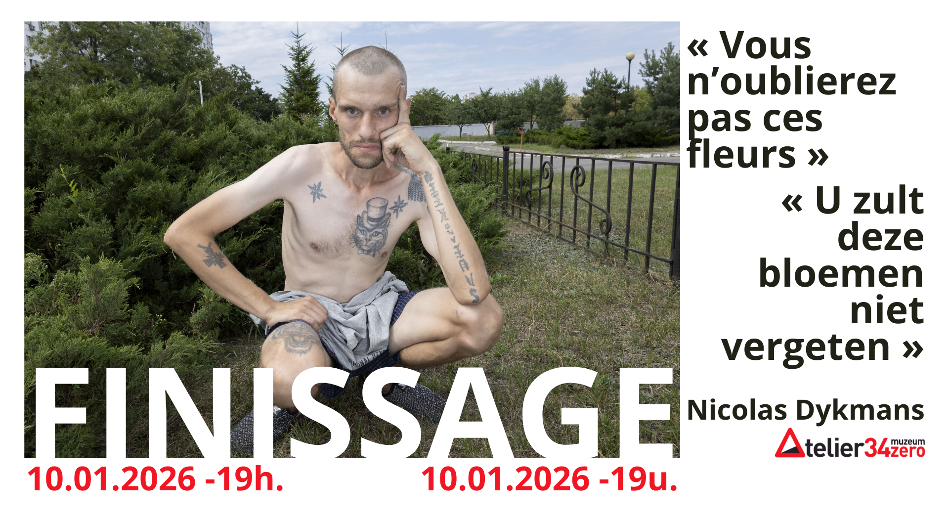 Na 9 maanden tentoonstelling hebben we eindelijk beslist om verder te gaan… en kondigen we dus het afbouwen aan van de tentoonstelling “U zult deze bloemen niet vergeten” van Nicolas Dykmans, die in een zeer ruwe stijl het bijna prozaïsche leven in Oekraïne documenteert.
